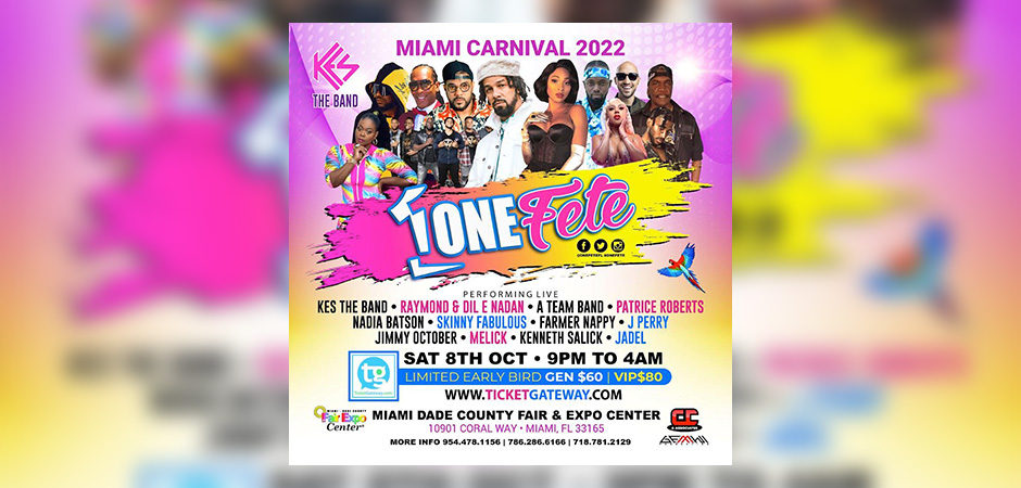 One Fete Miami Carnival Week | Sat Oct 8th | Kes The Band, Patrice Roberts, Jadel, Nadia Batson, Skinny Fabulous & More